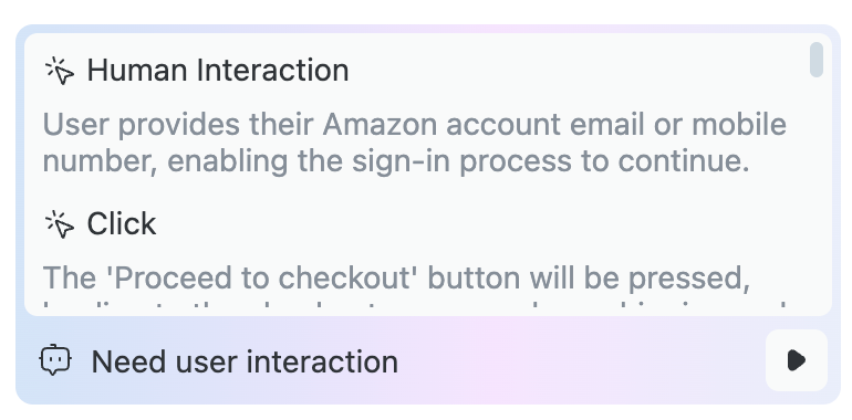 Neon Do navigates the real web on your behalf – checking multiple sites, comparing information, filling out forms, gathering data from pages in your Task. Some actions may require user interaction – that’s when Neon will pause and wait for you to act.